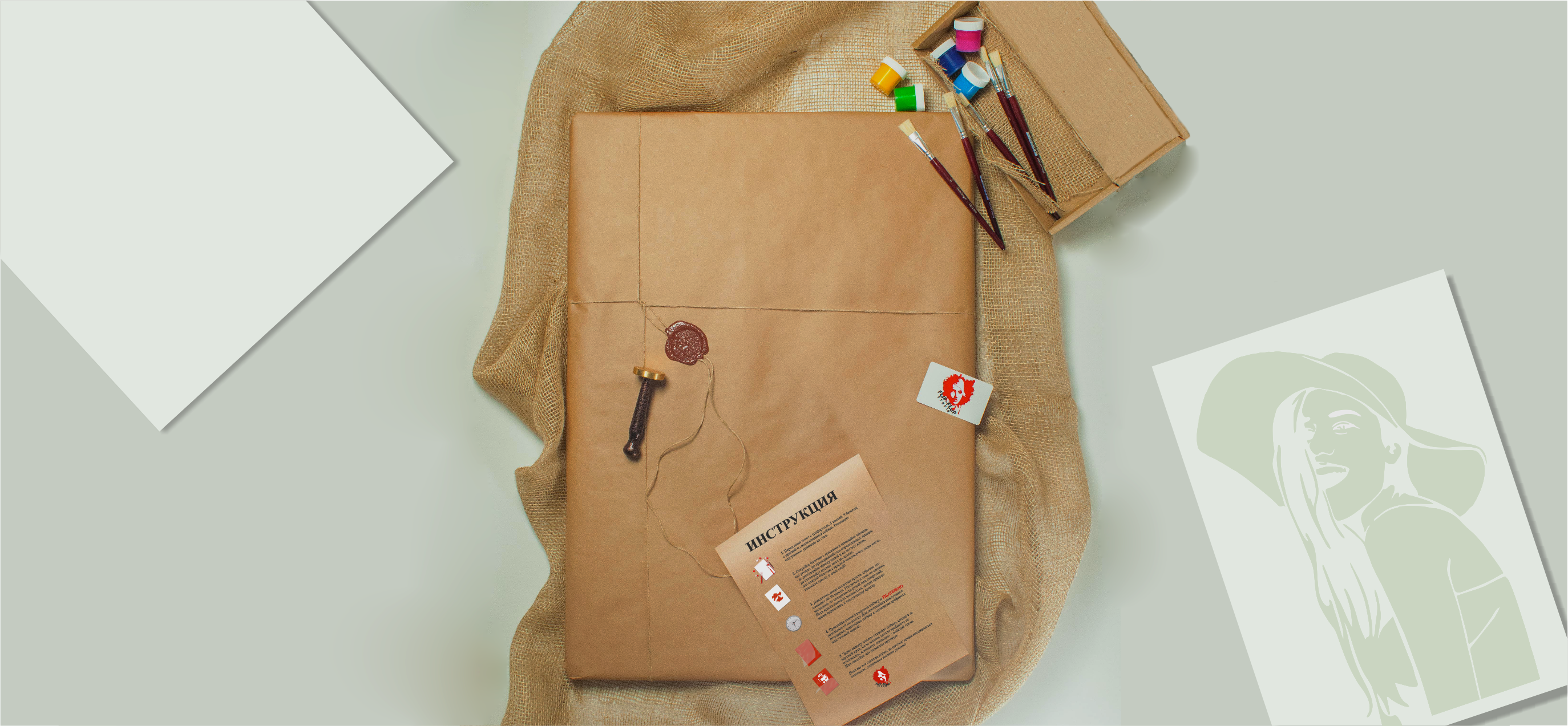 После утверждения макета, мы за 24 часа - создаем заготовку на холсте для будущего шедевра, собираем набор для создания портрета и красиво упаковываем.